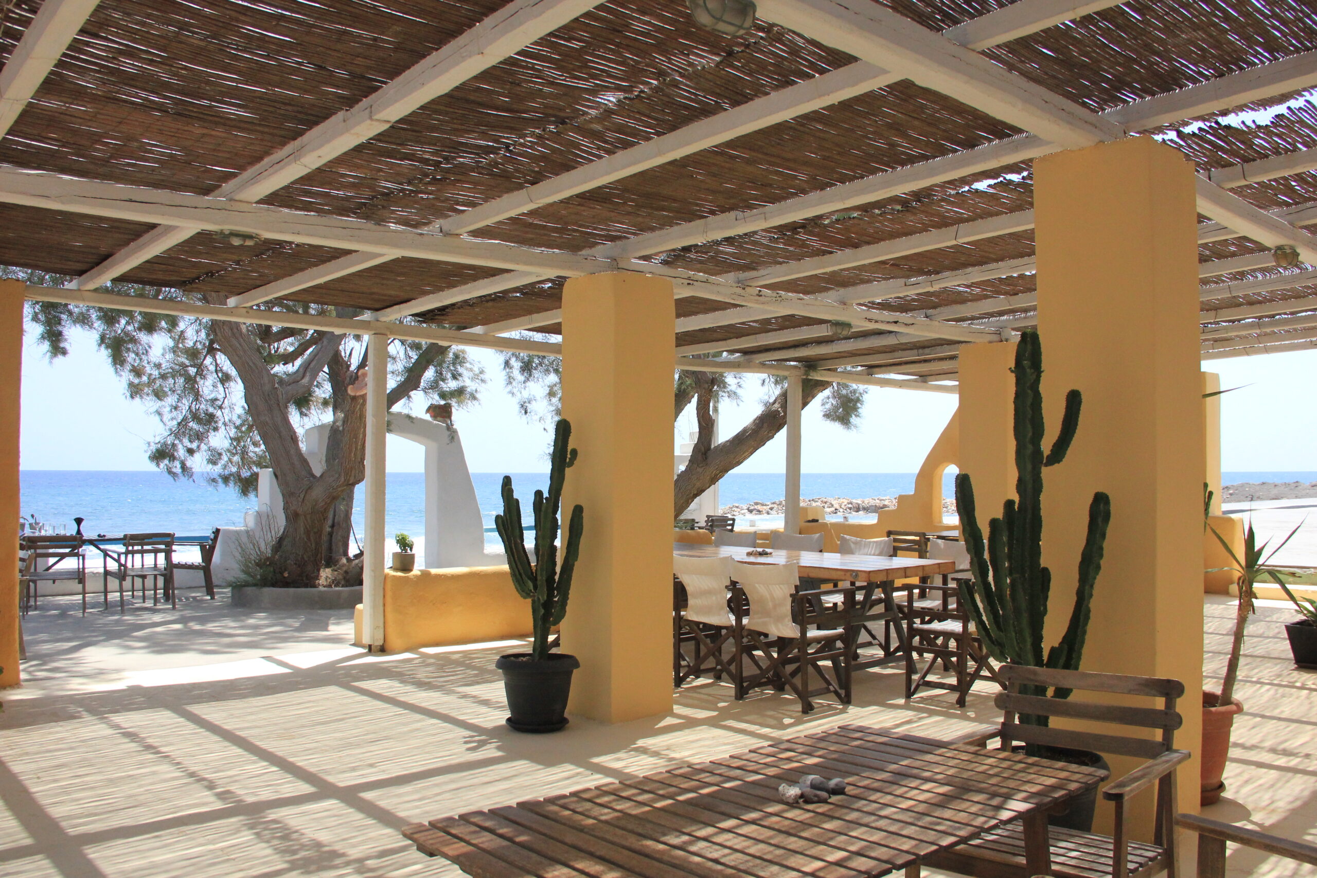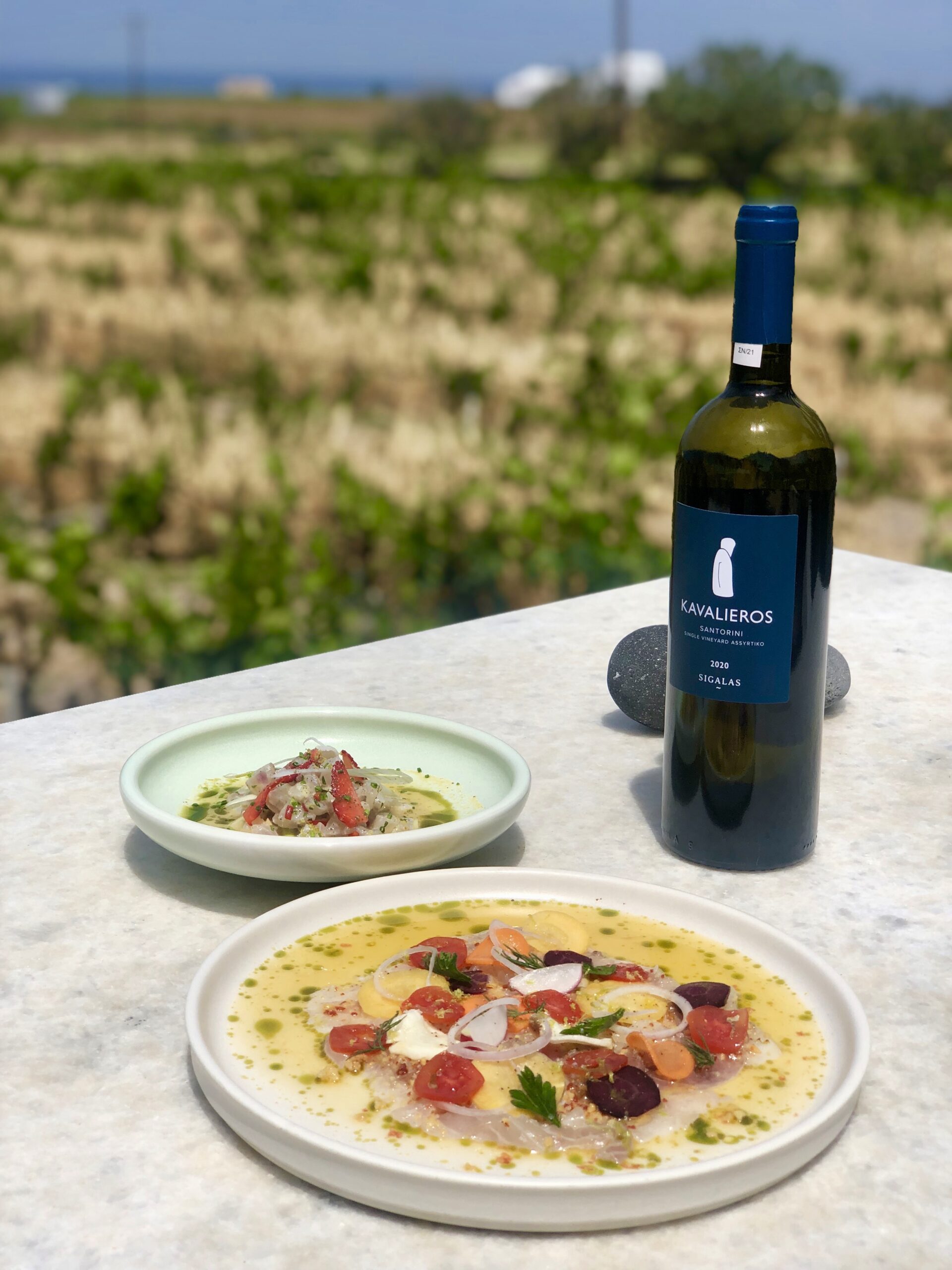 Το εκτενές μενού περιλαμβάνει εξαιρετικά πιάτα, ανάμεσά τους και ο δροσερός μαρινάτος τόνος με κρέμα από αβοκάντο Κρήτης, ο δημιουργικός ντάκος θαλασσινών, οι παραδοσιακοί σαντορινιοί τοματοκεφτέδες αλλά και η φάβα, το ζουμερό φρικασέ σφυρίδας και η σαντορινιά μελιτζάνα με ossobuco, πατάτα και μπεσαμέλ.