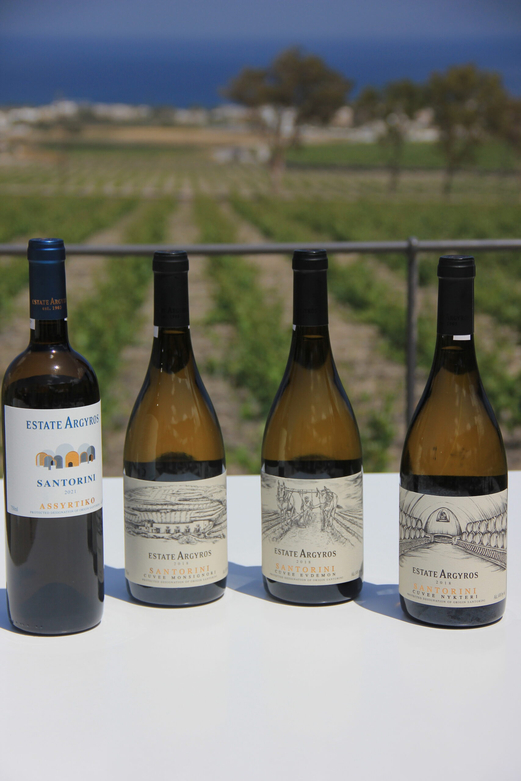 Τα υψηλής ποιότητας σταφύλια των Cuvée και του Vinsanto βοηθούν στο να επιτευχθεί η επιθυμητή απόδοση στις ξηρές οινοποιήσεις καθώς και στην παλαίωση. Η χρήση γαλλικού δρύινου βαρελιού για μεγάλο μέρος της διαδικασίας οινοποίησης του Cuvée Evdemon και του Cuvée Nychteri δίνει σε αυτά τα κρασιά ένα πολύ ωραίο όγκο στο στόμα αλλά και διακριτικό χαρακτήρα στο ποτήρι. Το εξαίσιο Vinsanto του κτήματος, τόσο το First Release όσο και το Late Release, παράγεται από 80% Ασύρτικο, 10% Αθήρι και 10% Αηδάνι. Η καθυστέρηση του τρύγου, το λιάσιμο των σταφυλιών κάτω από τον ήλιο και η πολύχρονη διαδικασία οινοποίησης, δίνουν στο Vinsanto απίθανο, καραμελέ χρώμα, γεμάτο σώμα, εξαίσια και πολύπλοκα αρώματα και μεστή, αλλά συνάμα ντελικάτη, γεύση.