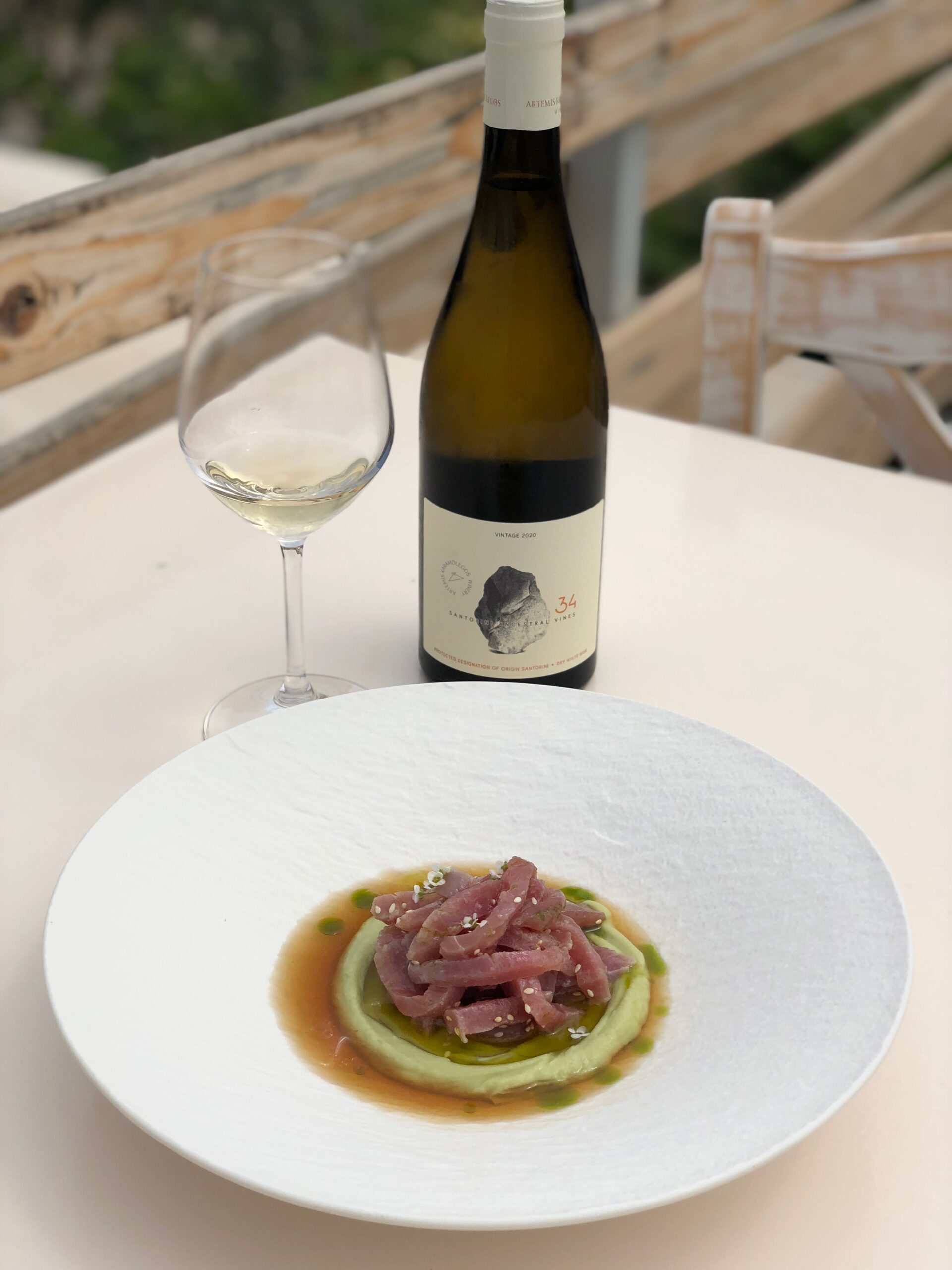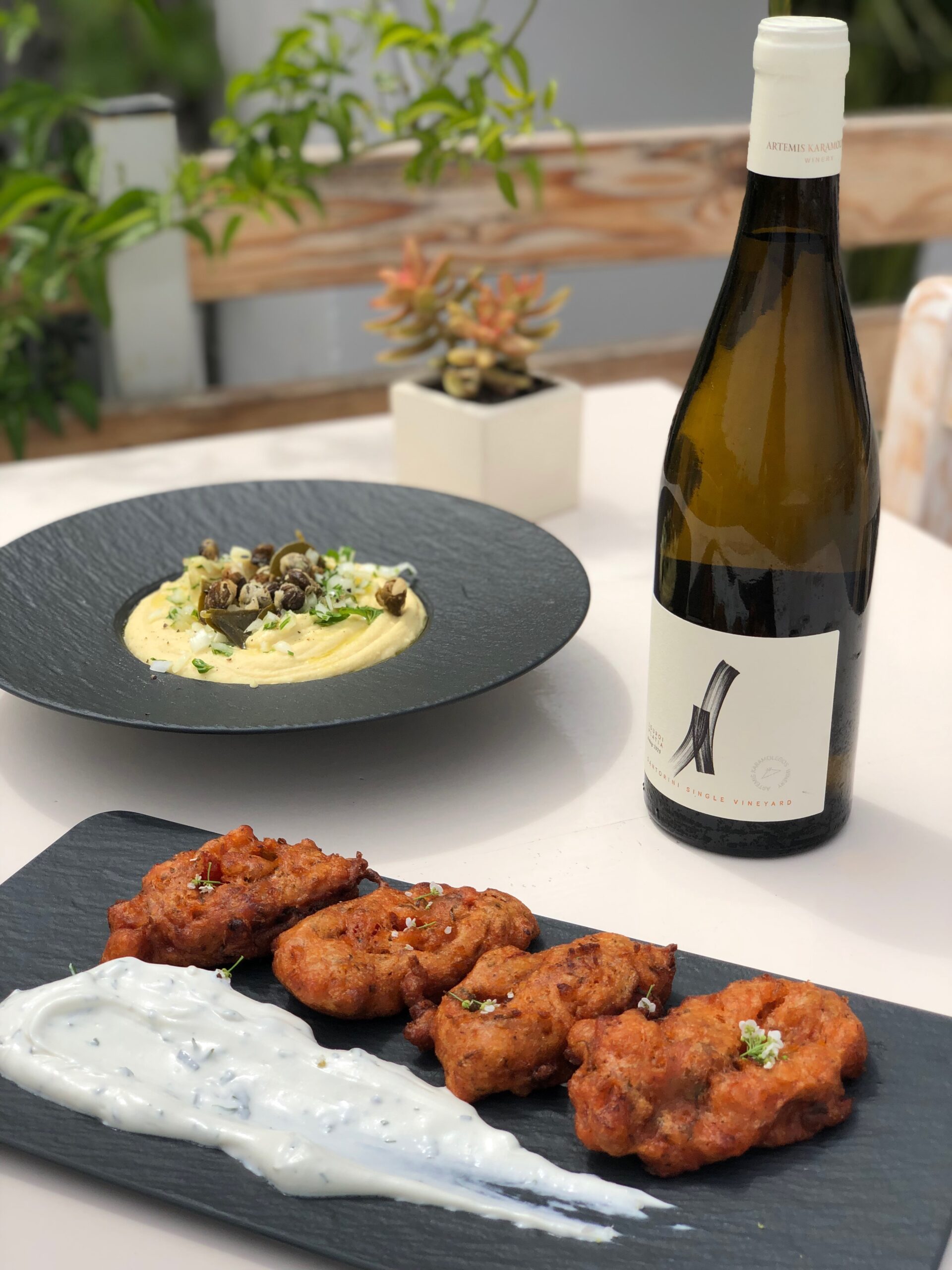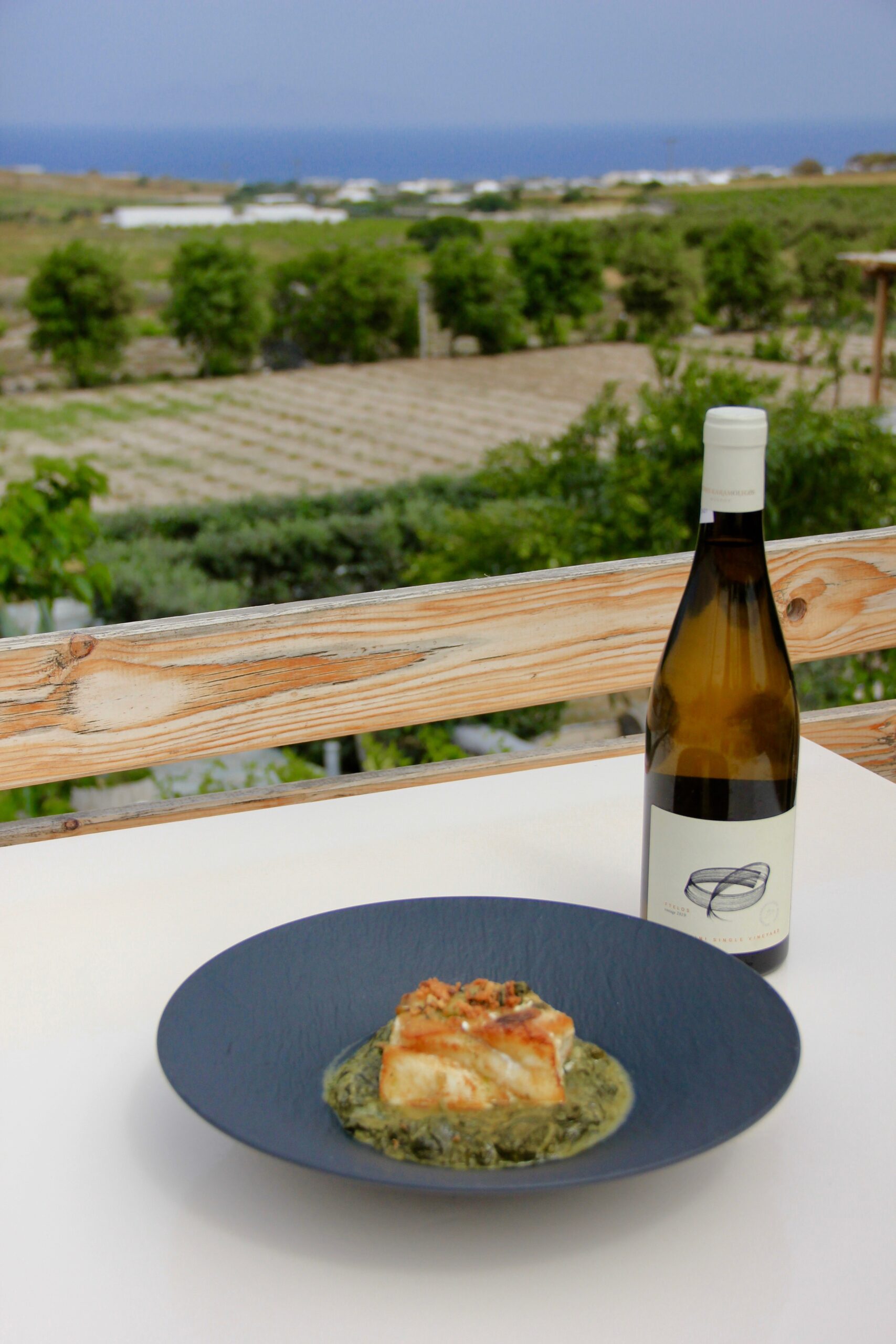 Άξιο δοκιμής είναι σίγουρα και το φρικασέ με ψάρι ημέρας. Ένα πιάτο που συνδυάζεται άψογα με την περίφημη Plethora.