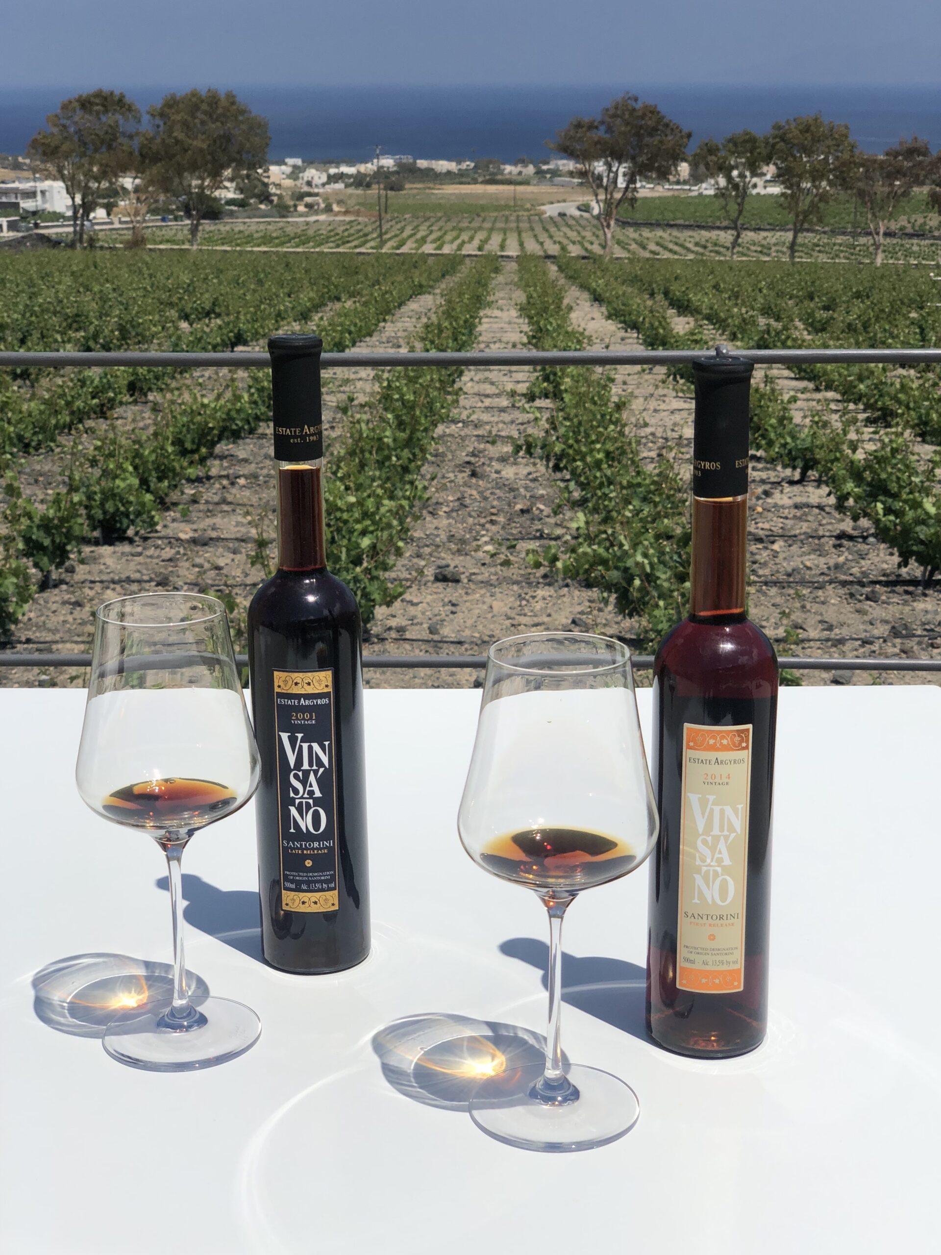 Η Σαντορίνη, πέρα από την σπάνια ομορφιά της, διαθέτει και έναν πραγματικά μοναδικό, σε παγκόσμιο επίπεδο, αμπελώνα. Ανασκαφές στο νότιο άκρο του νησιού, το Ακρωτήρι, μαρτυρούν ότι στο νησί καλλιεργούνταν αμπέλια τουλάχιστον από τον 17ο π.Χ. αιώνα. Η περίφημη έκρηξη του ηφαιστείου το 1.600 π.Χ., κατέστρεψε τον πανάρχαιο αμπελώνα αλλά έδωσε στο νησί ένα φυσικό προστάτη – το ηφαιστειογενές έδαφός του που δεν επέτρεψε στην φυλλοξήρα να πατήσει πόδι στη Σαντορίνη. Έτσι τα αμπέλια του νησιού είναι αυτόριζα και μετρούν αιώνες καλλιέργειας. Διαμορφώνονται σε γοητευτικές κουλούρες – λόγω της μορφολογίας του εδάφους, των ισχυρών ανοιξιάτικων ανέμων, της έλλειψης νερού και του δυνατού καλοκαιρινού ήλιου – και προσφέρουν κρασιά ασύλληπτης δύναμης.