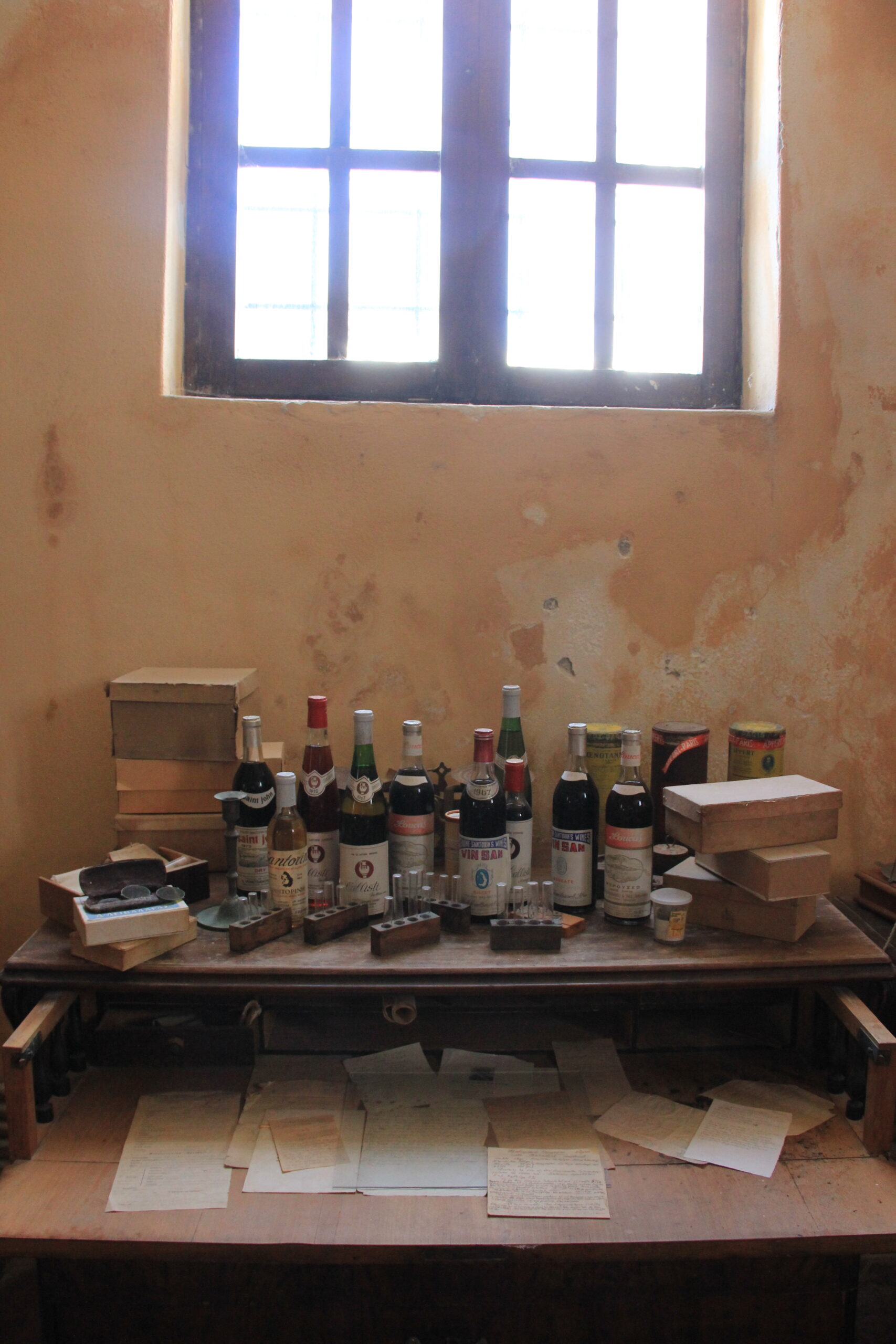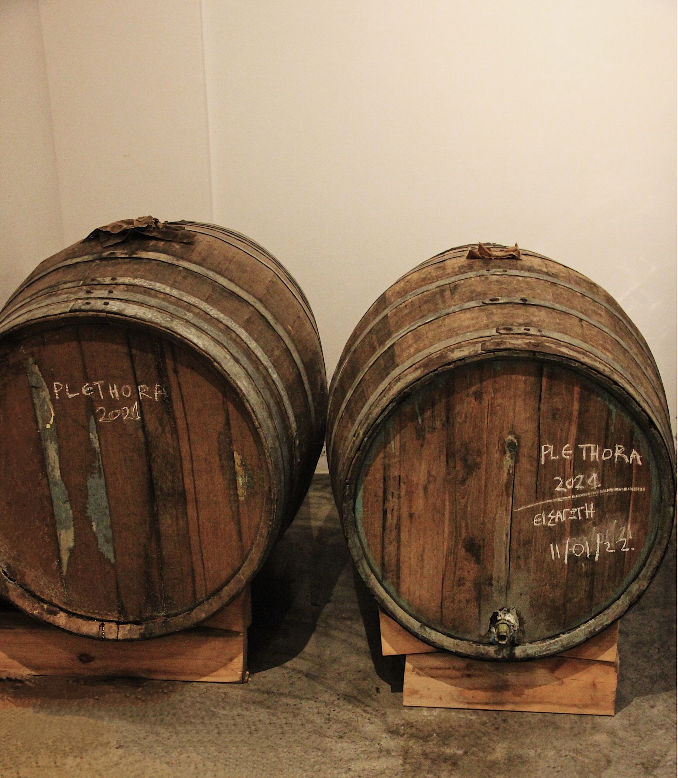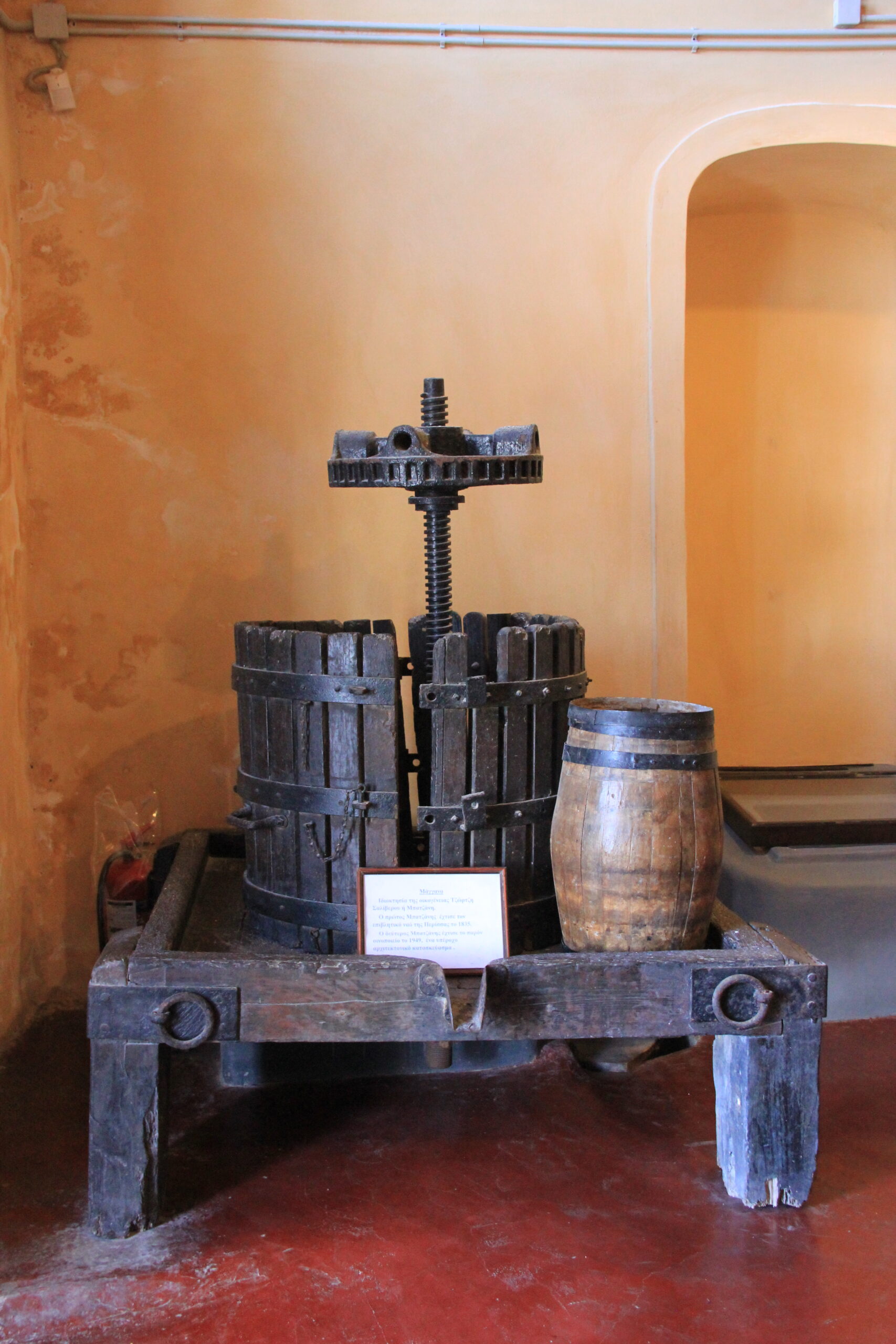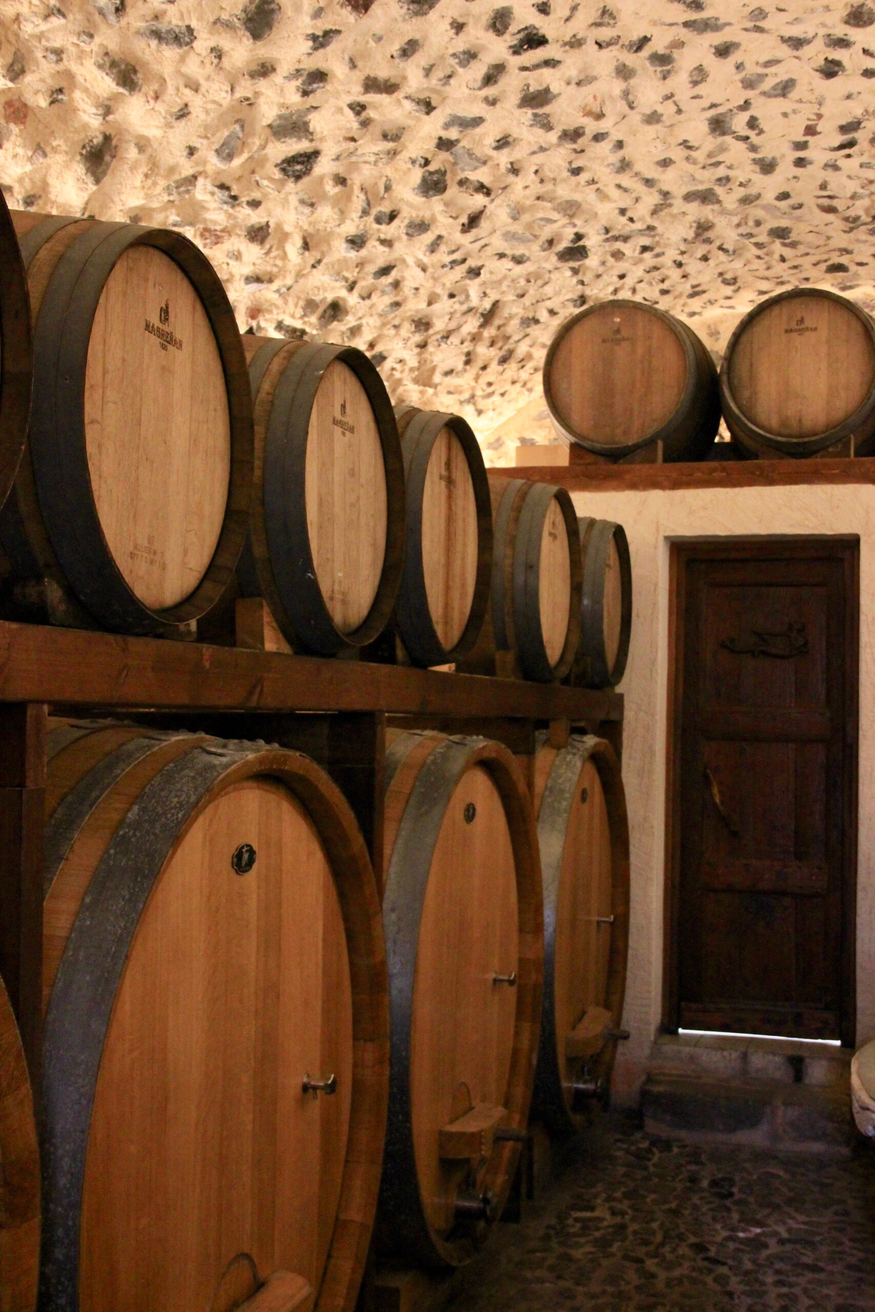 στο οινοφυλάκιο όπου φυλάσσονται παλιές σοδιές καθώς και στη σπηλιά με τα βαρέλια όπου παλαιώνουν τα κρασιά.Photo: Άννα Τασιούλα