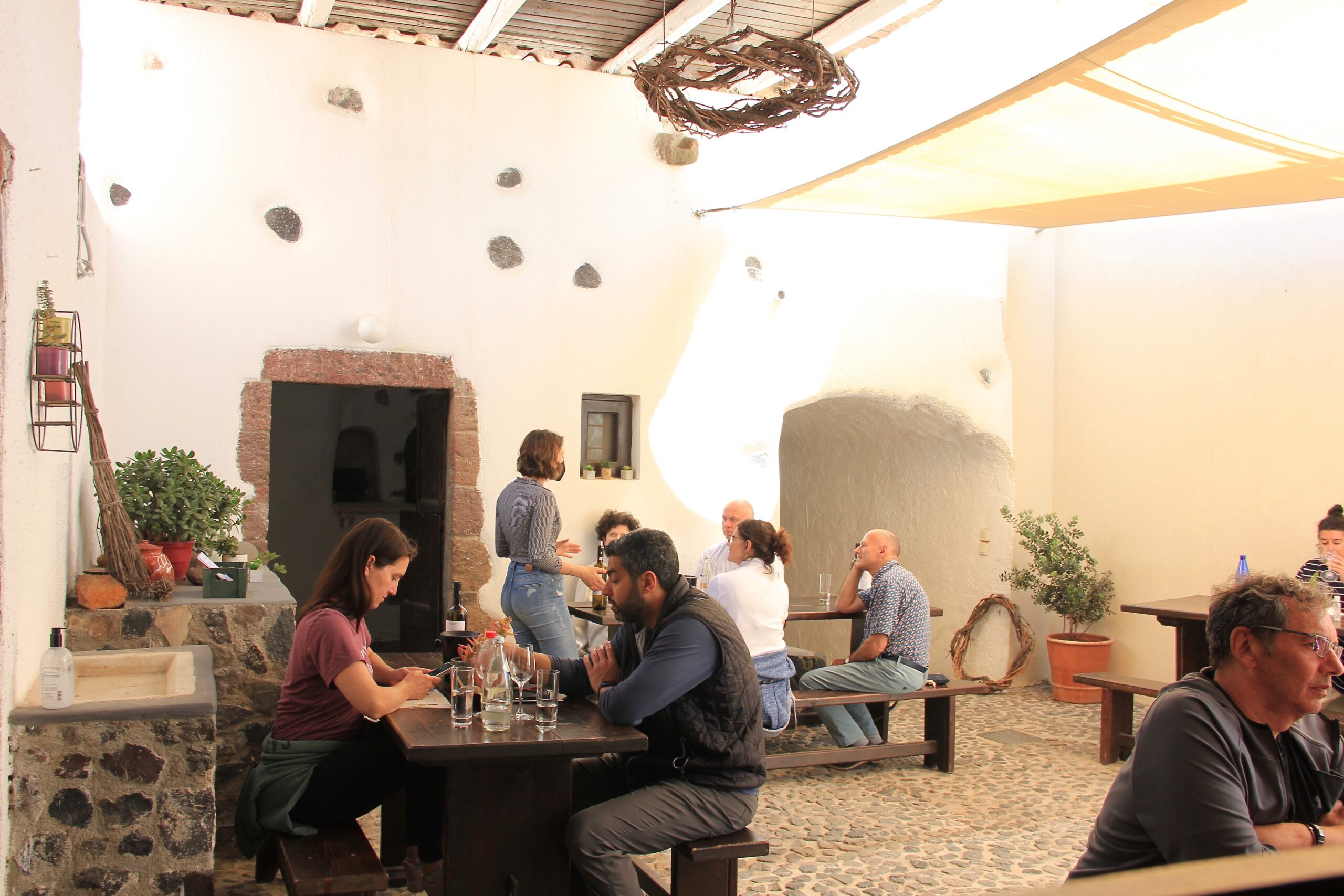 Μπορούν, επίσης, να κάνουν δοκιμή κρασιών, συνοδεία ενός ελαφρού γεύματος με σαντορινιά εδέσματα, όπως ντοματοκεφτέδες, φάβα και δροσερή ελληνική σαλάτα με χλωρό τυρί.