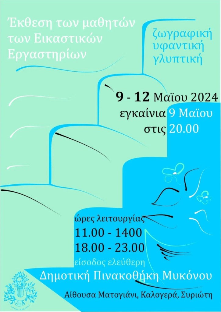 Εγκαίνια της έκθεσης των μαθητών των Εικαστικών Εργαστηρίων του Δήμου Μυκόνου στην Δημοτική Πινακοθήκη Μυκόνου την Πέμπτη 9 Μαίου.